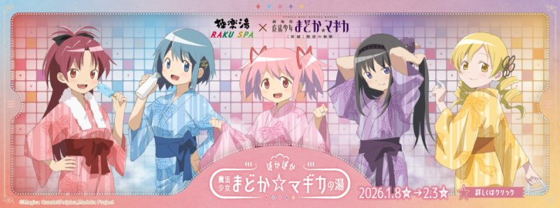 1/8(木)より「魔法少女まどか☆マギカ」とのコラボキャンペーン“ぽかぽか魔法少女まどか☆マギカの湯”を開催いたします。